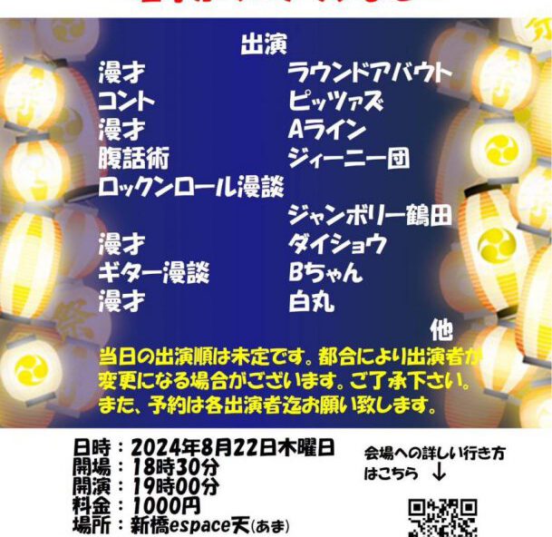 【公演情報】 平素は我が協会をご贔屓賜り誠にありがとうございます。 2024年8月! ☆若手お笑いライブ☆ 一般社団法人 ボーイズ・バラエティー協会主催 『ロングネタバケーション 〜若手からベテランまで〜 Vol.3…