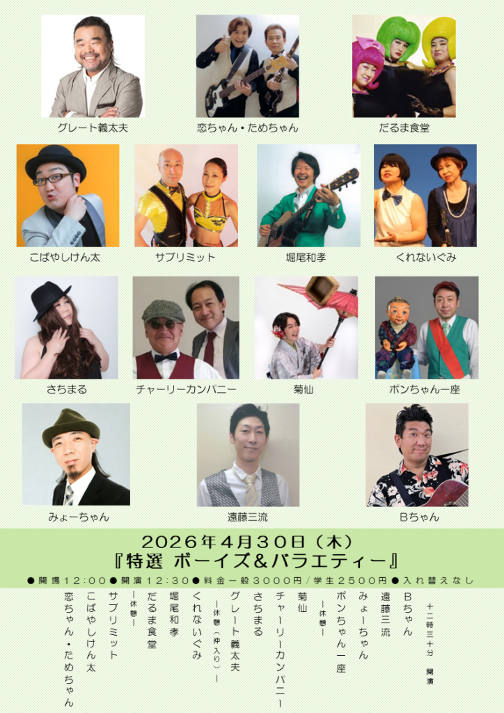 東洋館 4月30日『特選ボーイズ&バラエティー』