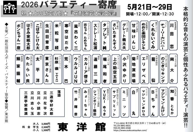 東洋館 5月21日~29日『バラエティー寄席』